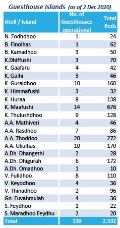 Poleg tega naj bi decembra 2020 odprli še 2 letovišči s 564 posteljami. Od vseh 159 letovišč na Maldivih je to 84% operativnih.