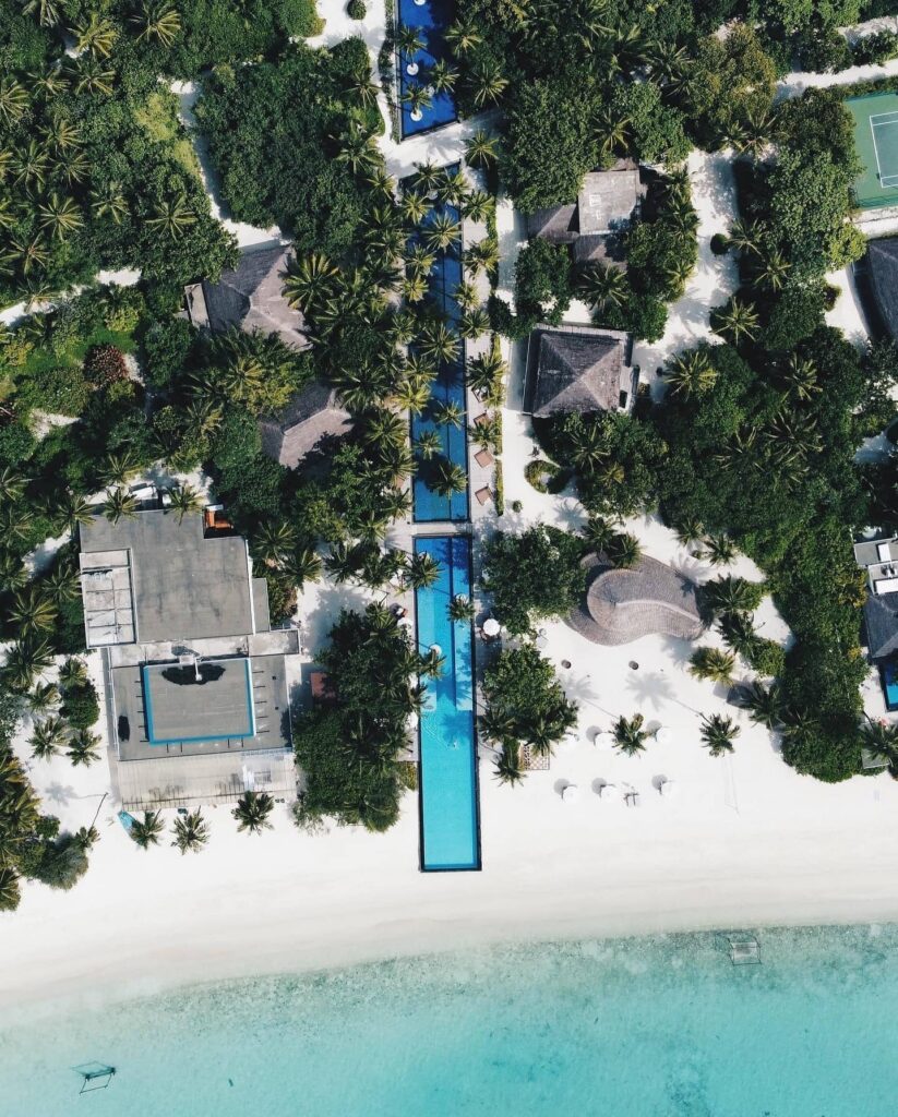 Praškaste bele peščene plaže, obrobljene z nihajočimi dlanmi, maldivijsko sonce, slani morski vetrič in 200-metrski neskončni bazen, ki se razprostira po otoku, ponujajo tropski pobeg in razvajanje bosih nog.