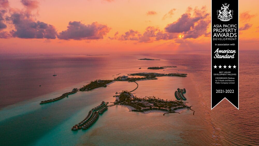CROSSROADS Maldivi je spektakularna turistična destinacija na več otokih, ki jo je razvil S Hotels and Resorts PCL. Mednarodno gostinsko podjetje Singha Estate PCL, ki je lastnik Crossroada, je doseglo še eno pomembno svetovno čast, potem ko je bilo imenovano kot “best leisure development Maldives (s petimi zvezdicami)” na podelitvi nagrad Asia Asia Property Awards 2021–2022.
