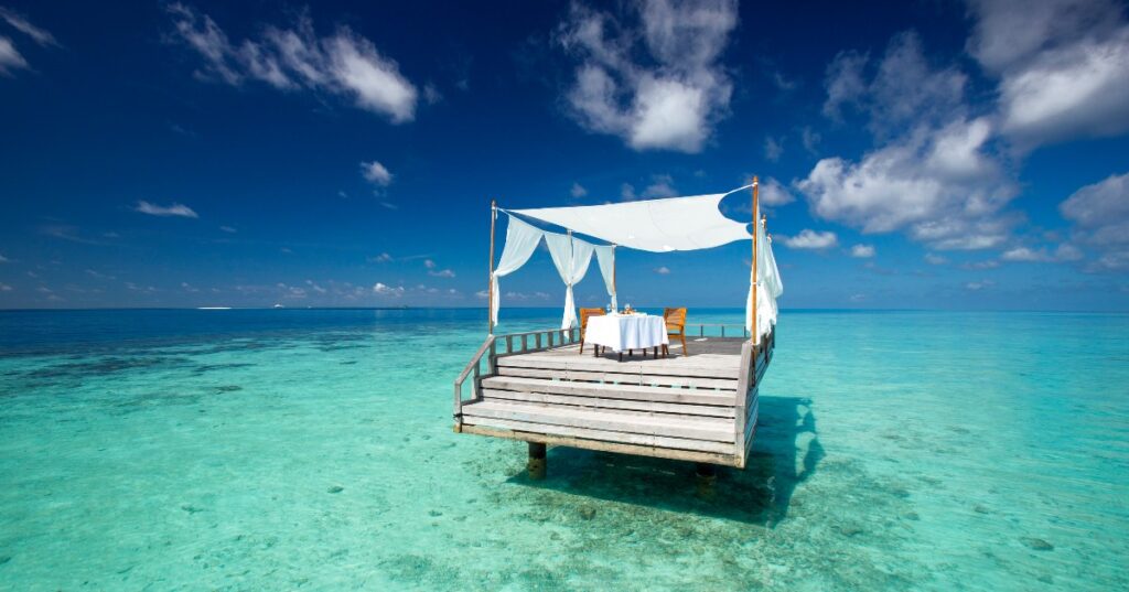 Baros Maldivi parom ponujajo romantično zasebno jedilnico, kakršne nobena druga ne more ponuditi na njihovem edinstvenem “Piano Decku”, ki plava sredi lagune, obkrožene z brizganjem valov in nežnim maldivijskim vetrom.
